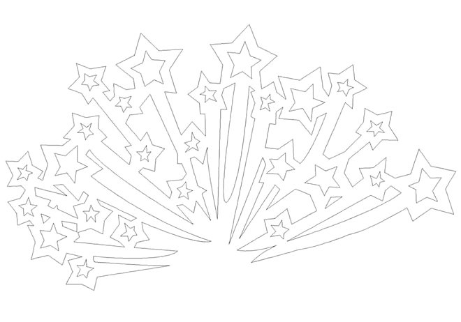 Салют – это всегда праздник, радость, отличное настроение. Использовать шаблоны на окна на 23 февраля с изображением салюта – отличная идея. Их можно раскрасить разными цветами, чтобы они выглядели еще ярче и наряднее.