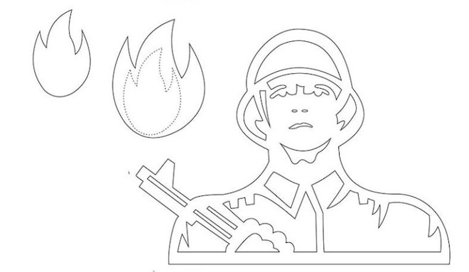 Вечный огонь – это сокровенная память воинам, которые героически отдали жизнь во время войны за свободу и мирное поколение будущих поколений. Такой трафарет можно использовать, чтобы украсить класс или группу детского сада к празднику.